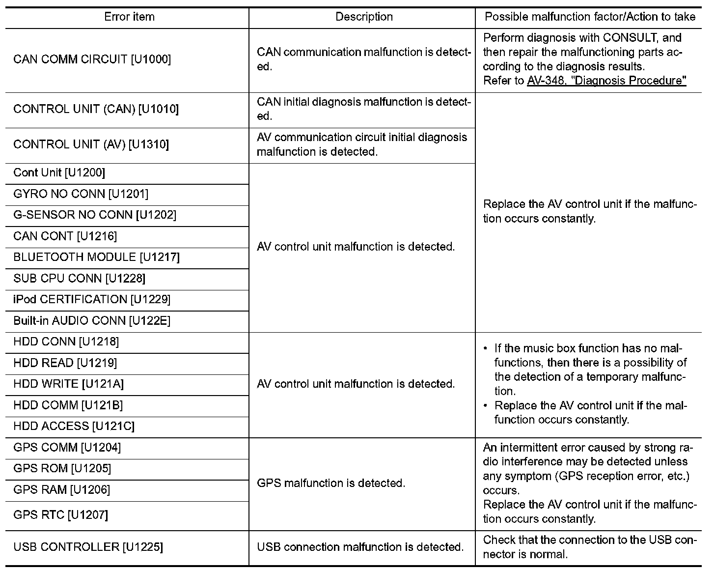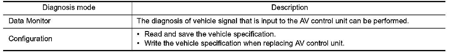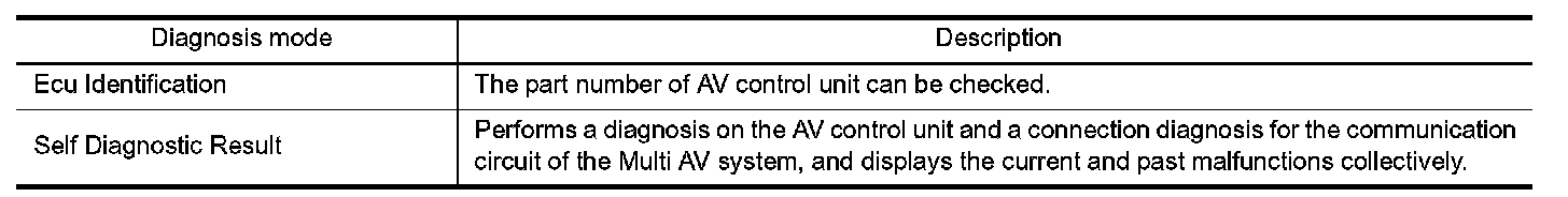 DIAGNOSIS SYSTEM (AV CONTROL UNIT)
