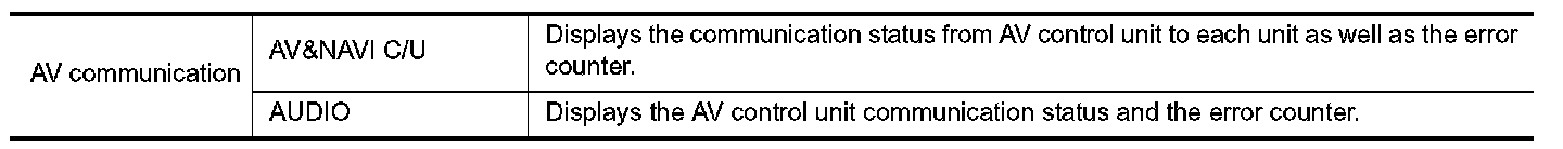 When "AV communication" of "CAN Diag Support Monitor" is selected, the following function will be performed.