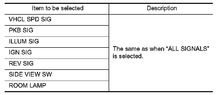 Allows the technician to select which vehicle signals should be displayed and displays the status of the selected vehicle signals.