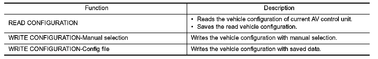 CONSULT performs the following functions via the communication with the AV control unit.