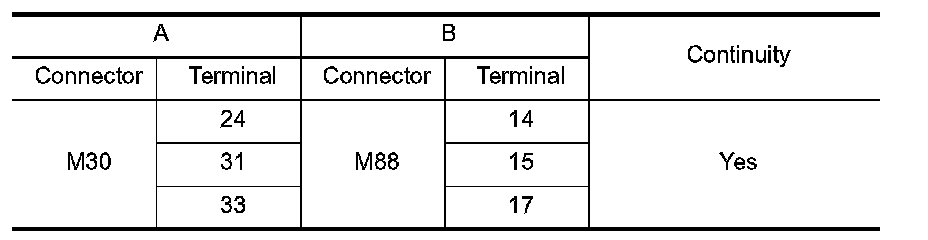 2.Check continuity between spiral cable harness connector M30