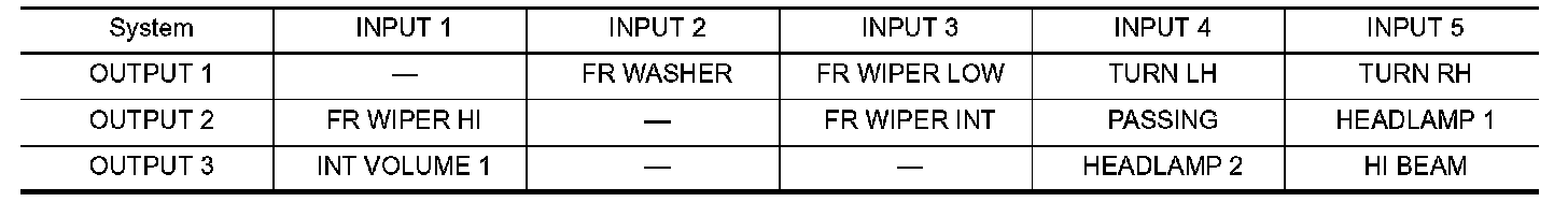- BCM detects the combination switch status signal "5AD" when the signals of OUTPUT 1 and OUTPUT 4 are input to INPUT 5.