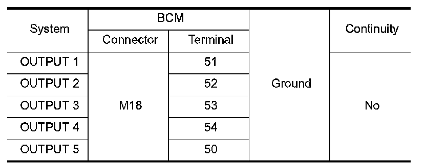 Check for continuity between BCM harness connector and ground.
