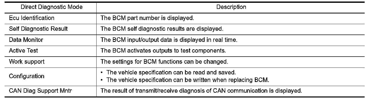 CONSULT performs the following functions via CAN communication with