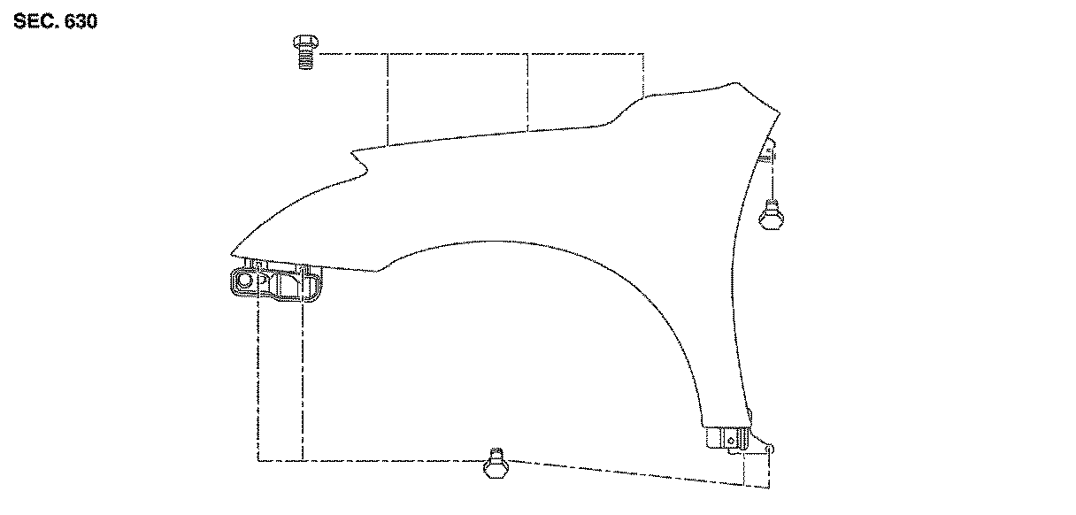 - Use care when removing the front fender. The front fender baffle foam adheres the front fender to the body side outer. Carefully release the foam or damage to the fender may occur.