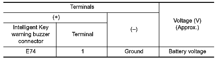3.Check voltage between Intelligent Key warning buzzer connector and ground.