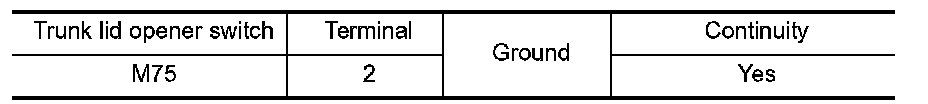Check continuity between trunk lid opener switch connector and ground.