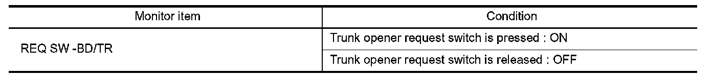 Check trunk opener request switch REQ SW -BD/TR in Data Monitor mode.
