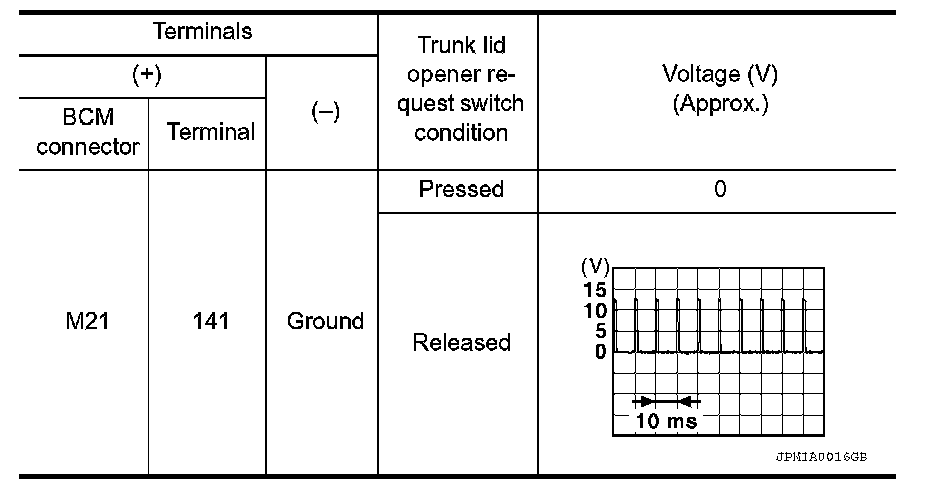 1. CHECK TRUNK OPENER REQUEST SWITCH OUTPUT SIGNAL