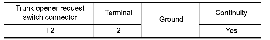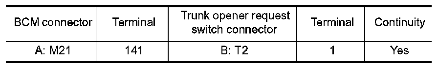 2.Check continuity between BCM connector and trunk opener request switch connector.