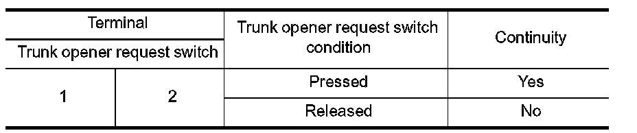 2. CHECK TRUNK OPENER REQUEST SWITCH CIRCUIT