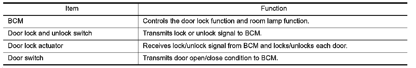 DOOR LOCK AND UNLOCK SWITCH : Component Description