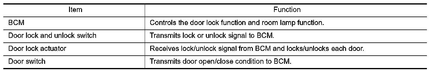 DOOR LOCK AND UNLOCK SWITCH : Component Description