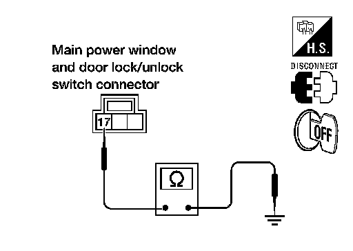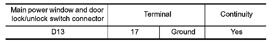 3.Check continuity between main power window and door lock/ unlock switch connector and ground.