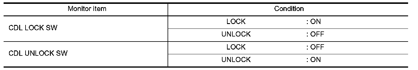Check CDL LOCK SW, CDL UNLOCK SW in Data Monitor mode with CONSULT.