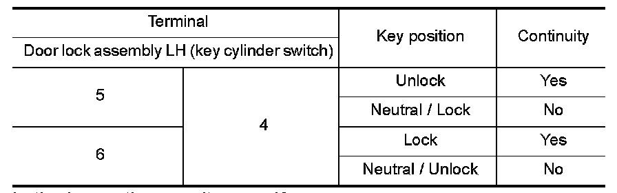 Check door lock assembly LH (key cylinder switch).