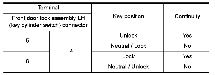 NO- Replace front door lock assembly LH (key cylinder switch). With Intelligent Key.