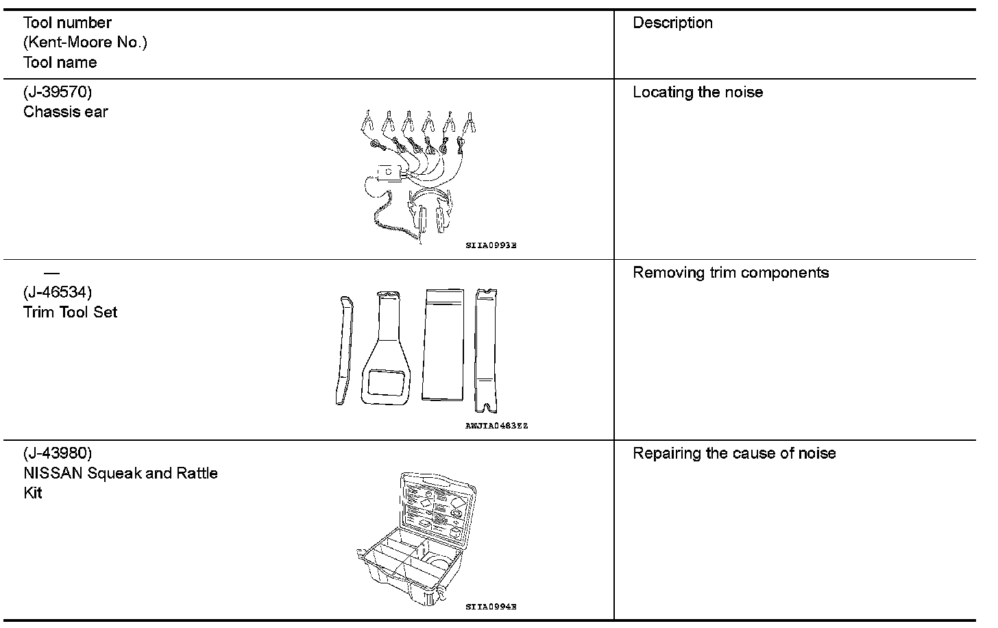 The actual shapes of Kent-Moore tools may differ from those of special service tools illustrated here.