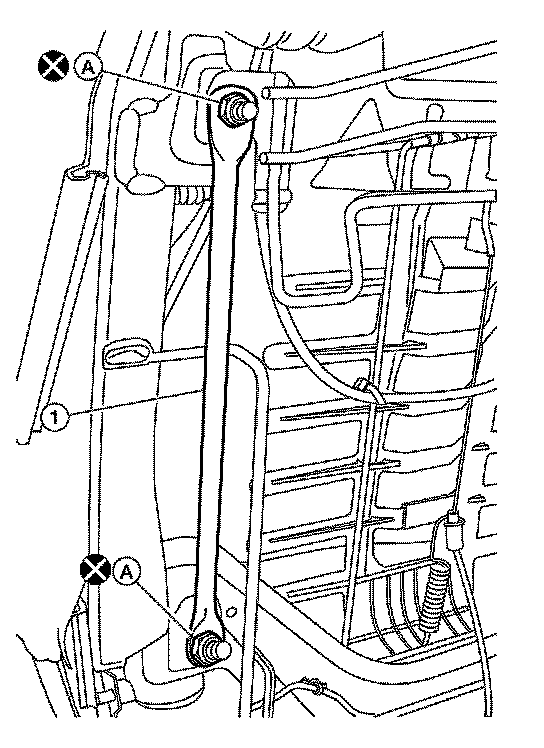 14.Remove and discard the two side air bag module nuts (A) from the side air bag module (1).