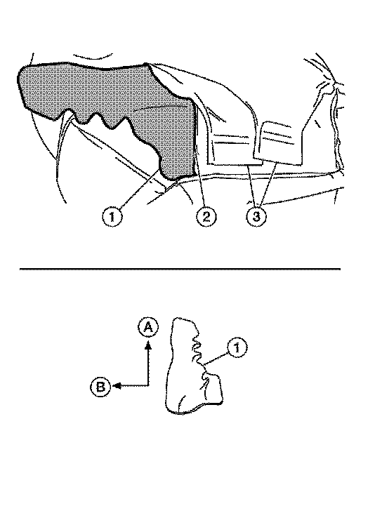 - Make sure plastic cover panel (1) is pushed fully into the bottom of the seatback cover pocket (2) behind the air bag module chute (3) as shown.