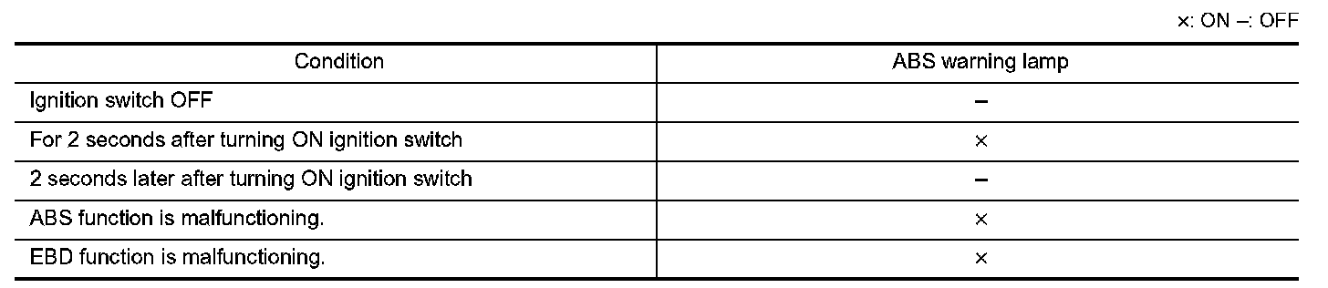 Check that the lamp illuminates for approximately 2 seconds after the ignition switch is turned ON.