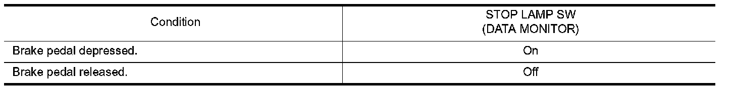 On "DATA MONITOR", select "STOP LAMP SW" and check the stop lamp switch signal.