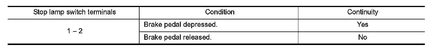Perform the stop lamp switch component inspection. Refer to "Component Inspection (Stop Lamp Switch)".