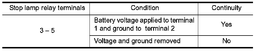 4.Check continuity between stop lamp relay terminals 3 and 5.