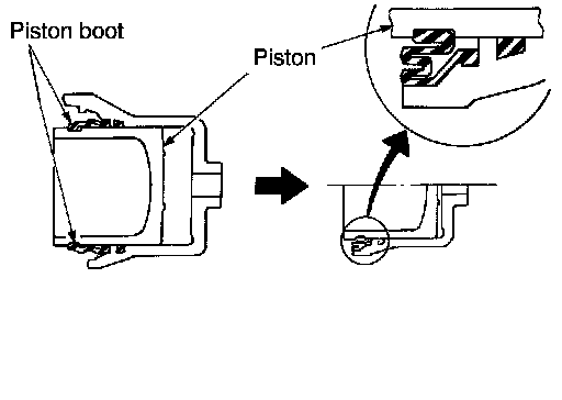 2.Apply rubber grease to new piston boot. Cover the piston end with new piston boot, and then install cylinder side lip on new piston boot securely into a groove on caliper.