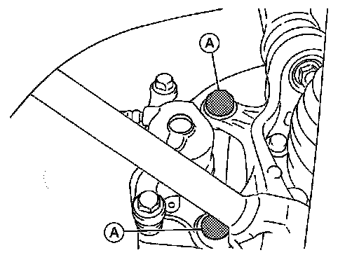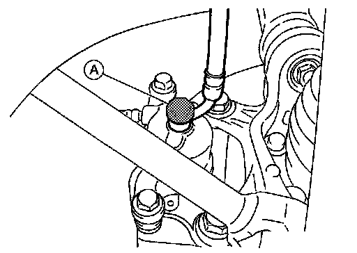 4.Remove union bolt (A) and then disconnect brake hose from caliper. Discard the copper sealing washers.