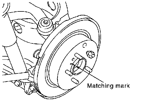 Put matching marks on wheel hub assembly and disc rotor, if it necessary to reuse the disc rotor.