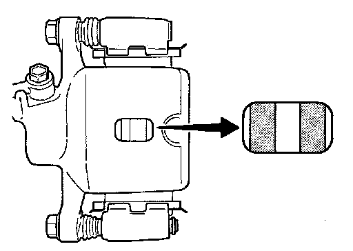 Check pad thickness from an inspection hole on caliper body. Check using a scale if necessary.