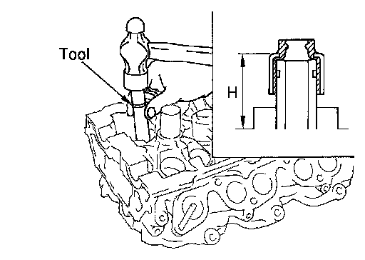c.Press-fit spark plug tube so that its height (H) is as specified in using suitable drift.