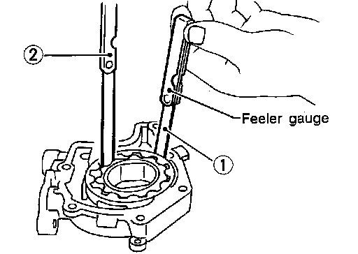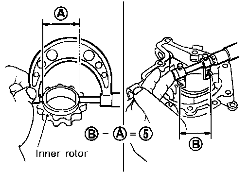 - Calculate the clearance between inner rotor and oil pump body as follows.