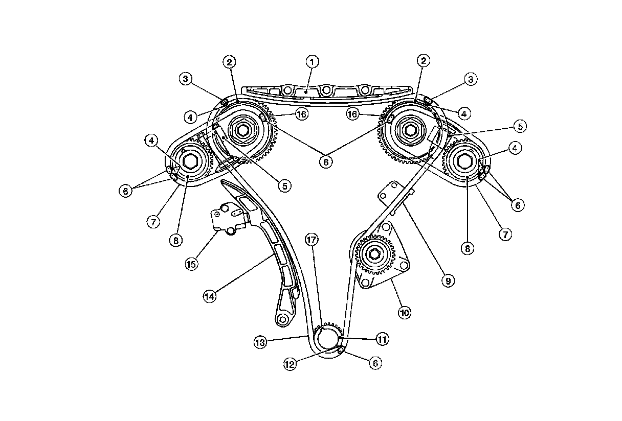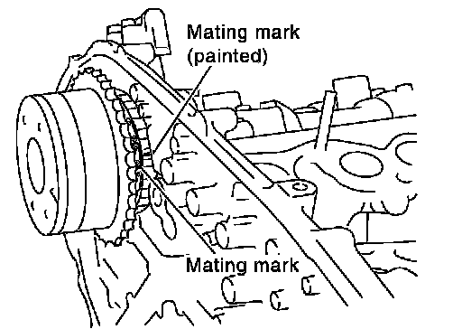 10.Reconfirm that the matching marks on the sprockets and the timing chain have not slipped out of alignment.