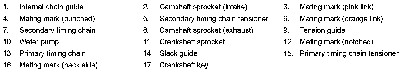 - During alignment, be careful to prevent dislocation of mating mark alignments of the secondary timing chains.