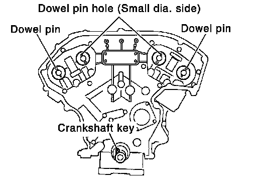 - Make sure that the dowel pin hole, dowel pin and crankshaft key are located as shown.