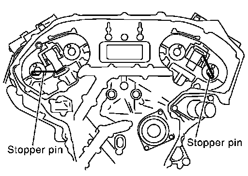 5.Pull the stopper pins out from the secondary timing chain tensioners.