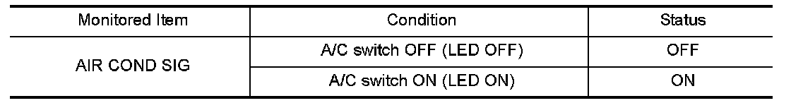 3.Select "AIR COND SIG" and monitor while pressing A/C switch ON and OFF.