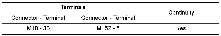 2.Check continuity between BCM harness connector M18 terminal 33 and front air control connector M152 terminal 5.