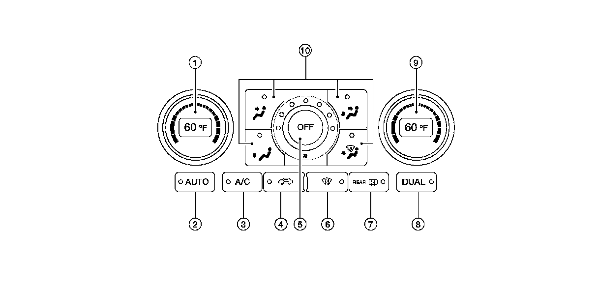 - When the DUAL switch indicator is not illuminated, the LH temperature setting is applied to both sides.