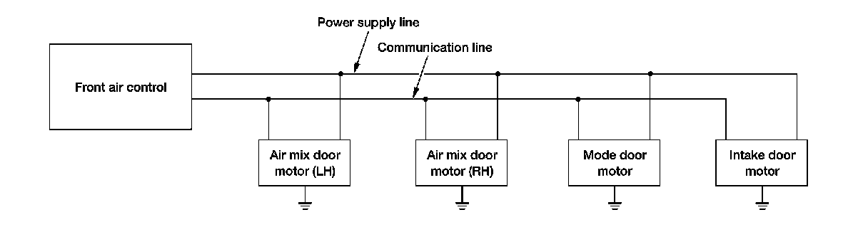 A small network is constructed between the front air control, mode door motor, air mix door motors and intake door motor. The front air control and motors are connected by data transmission lines and motor power supply lines. The LAN network is built through the ground circuits of each door motor.