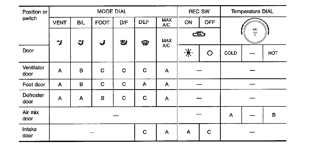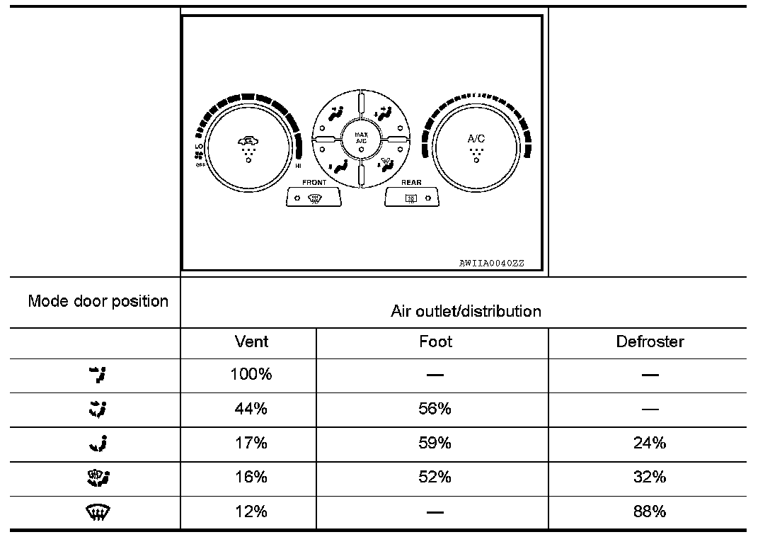- Data sent from the front air control are selected according to data-based decisions made by the mode door motor, air mix door motors and intake door motor.