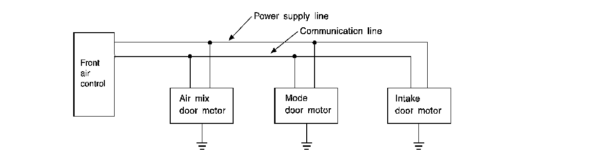 A small network is constructed between the front air control, mode door motor, air mix door motor and intake door motor. The front air control and motors are connected by data transmission lines and motor power supply lines. The LAN network is built through the ground circuits of each door motor.
