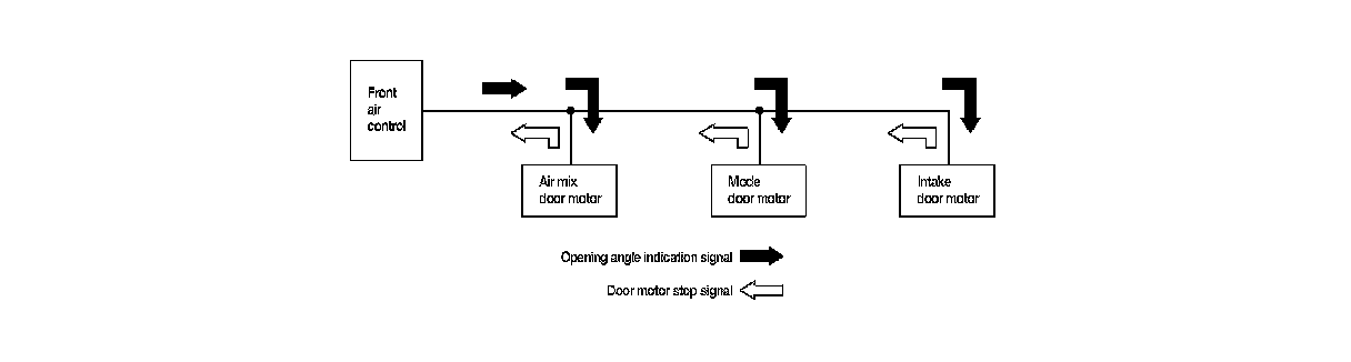 The mode door motor, air mix door motor and intake door motor read their respective signals according to the address signal. Opening angle indication signals received from the front air control and each of the motor position sensors is compared by the LCUs in each door motor with the existing decision and opening angles. Subsequently, HOT/COLD, DEF/VENT and FRE/REC operation is selected. The new selection data is returned to the front air control.