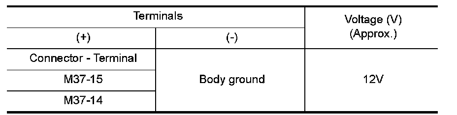 3.Check voltage between front air control connector M37 terminals 15 and 14, and ground.
