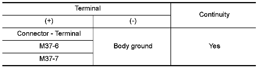 2.Check continuity between front air control connector M37 terminals 6and 7 and ground.