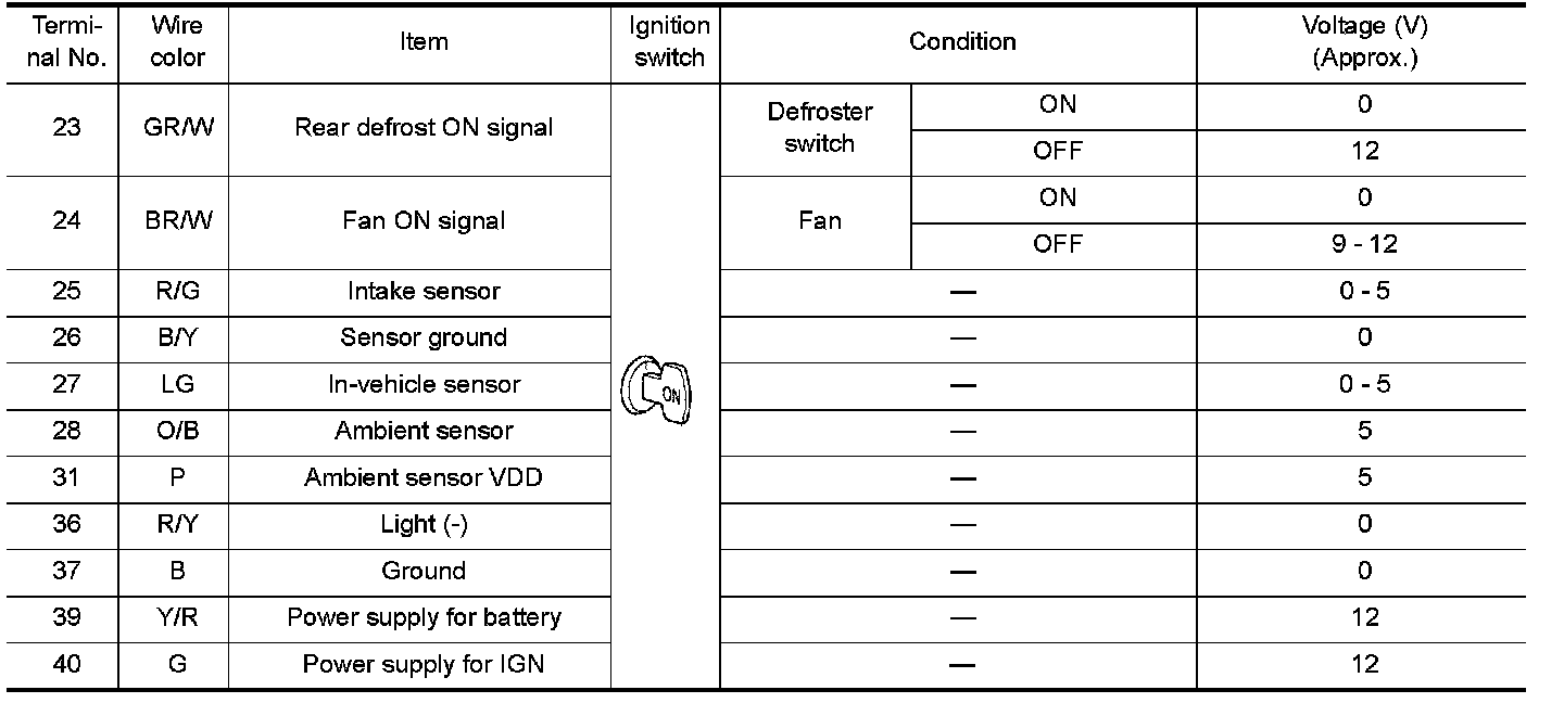 Pinout Values and Diagnostic Parameters