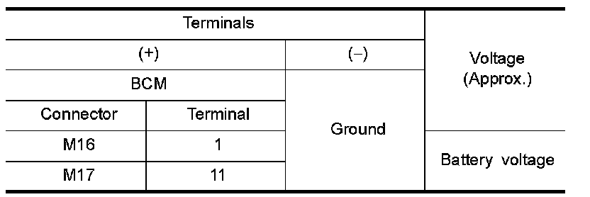 3.Check voltage between BCM harness connector and ground.