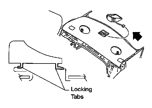 1.Slide high-mounted stop lamp assembly rearward on parcel shelf to give clearance to front tabs.